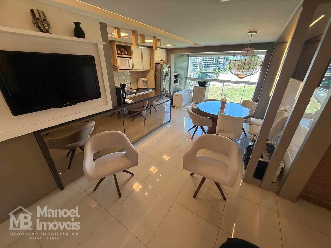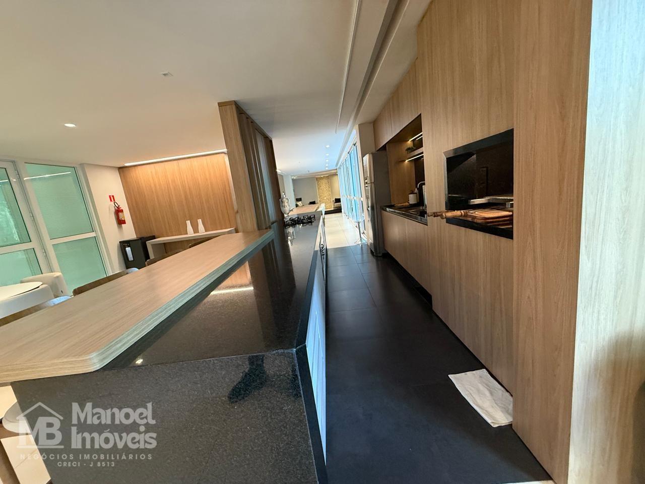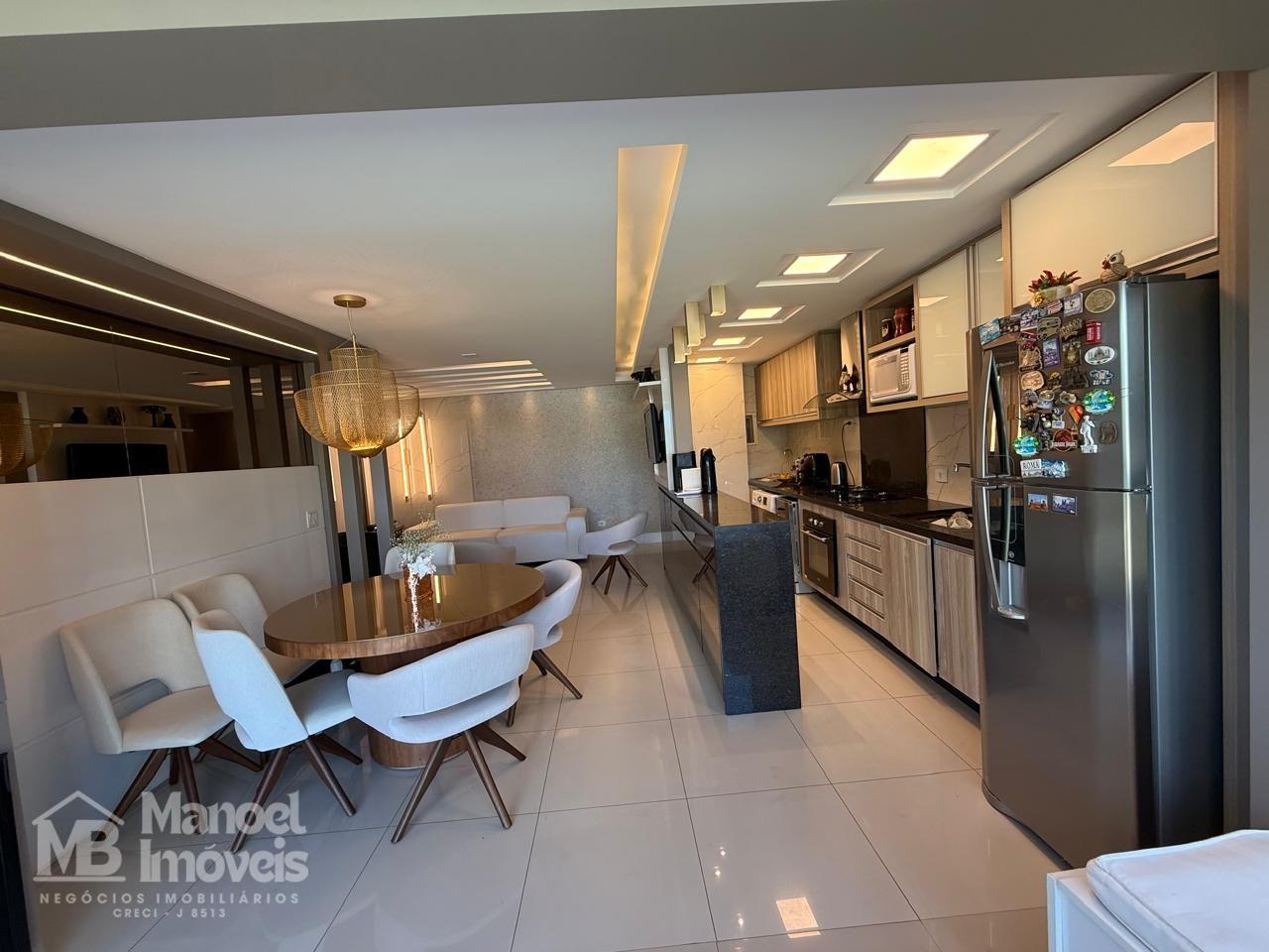 - Cozinha integrada com armários planejados, tampo de granito e cooktop