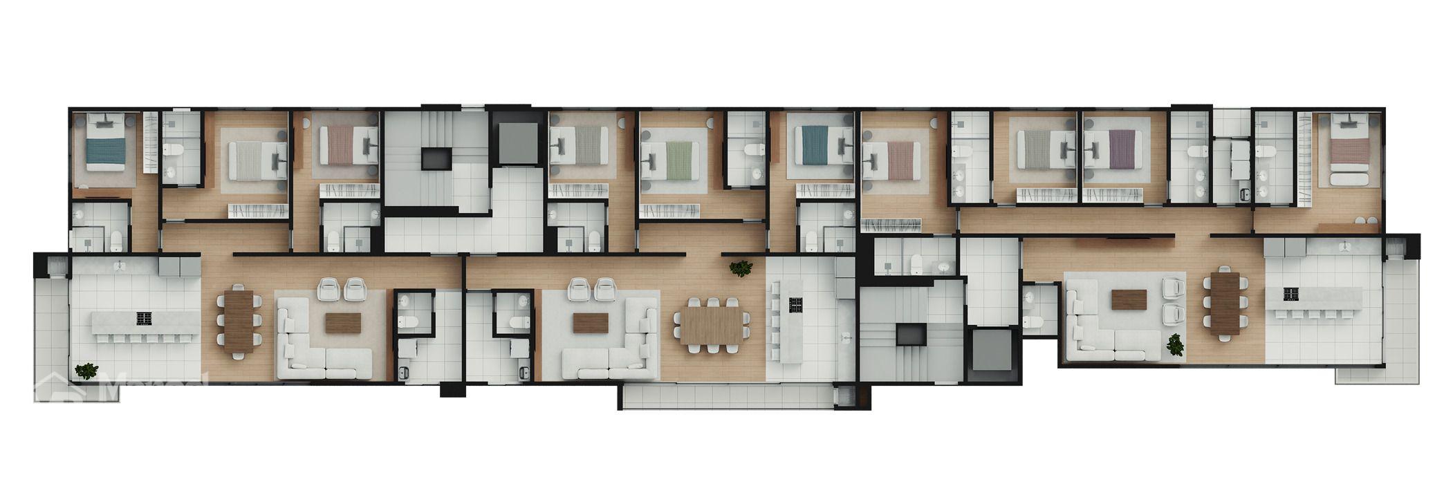 122,97m² de área privativa distribuídos em:
