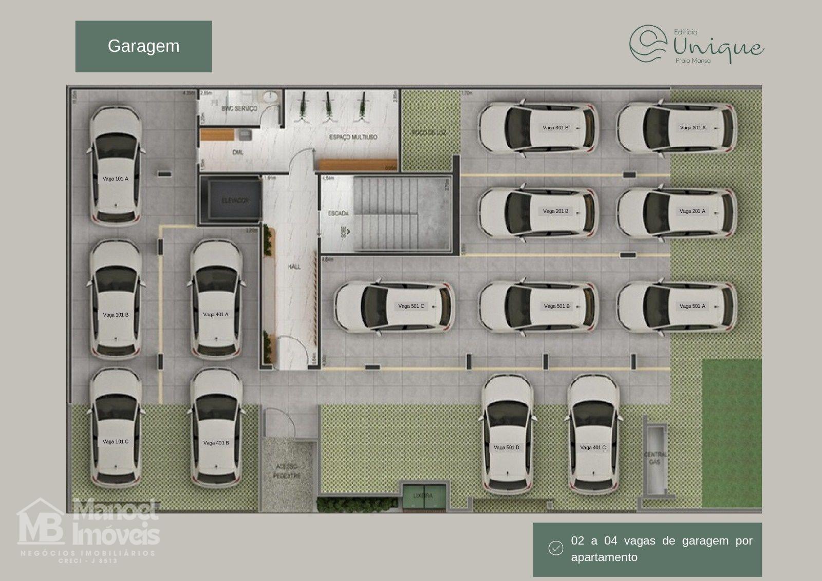 Opção de 2 a 3 vagas de garagem por apartamento.