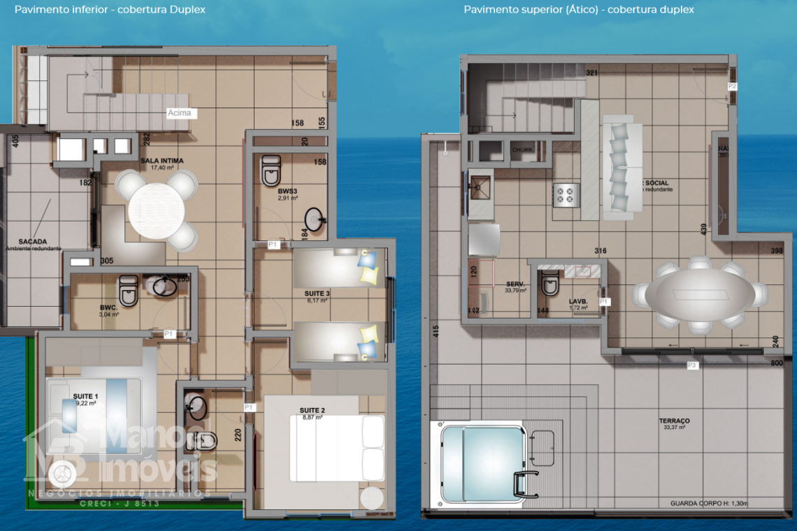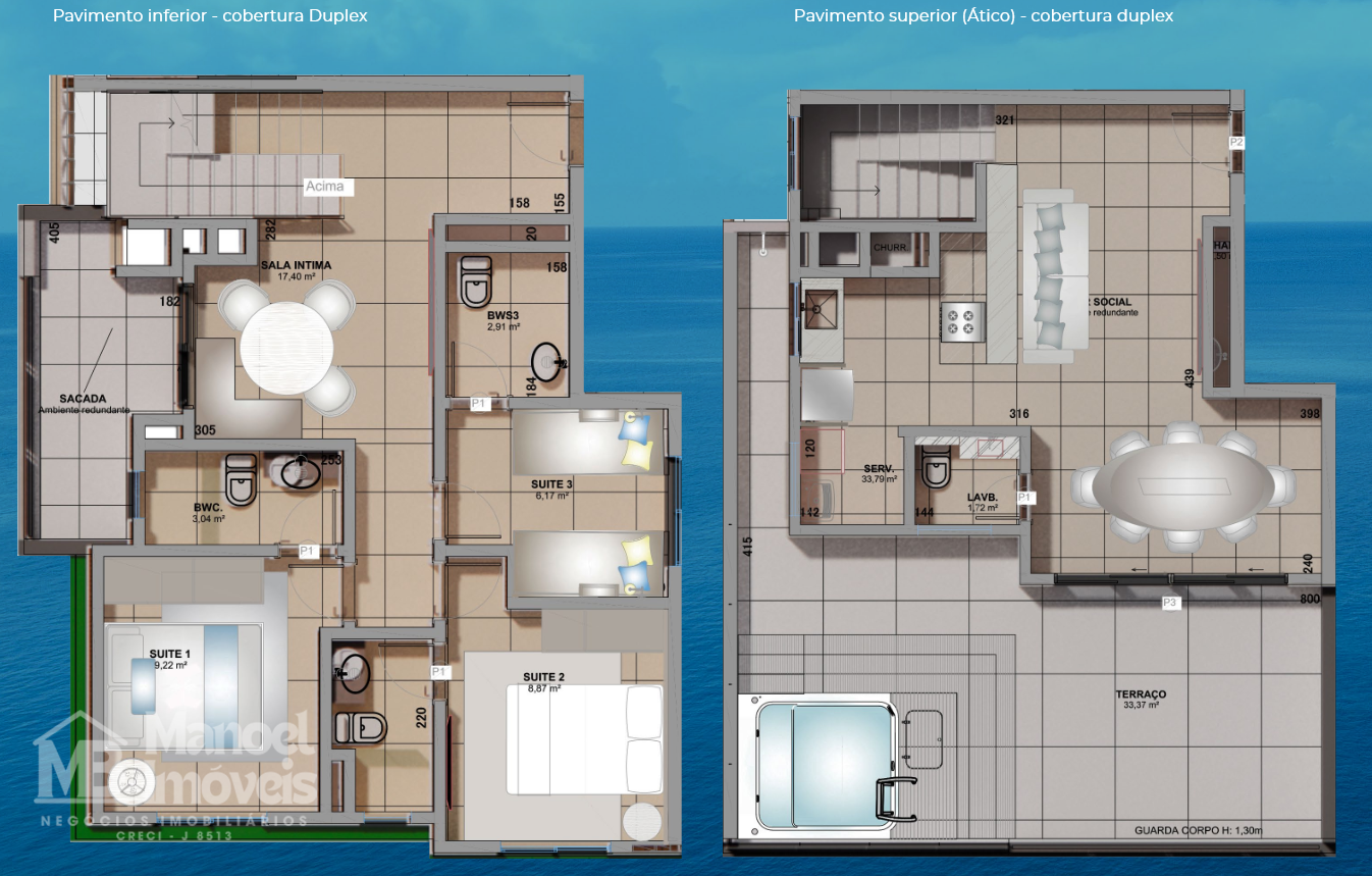 REF 182- EDIFICIO POEMA COBERTURA DUPLEX Nº 1004GUARATURA